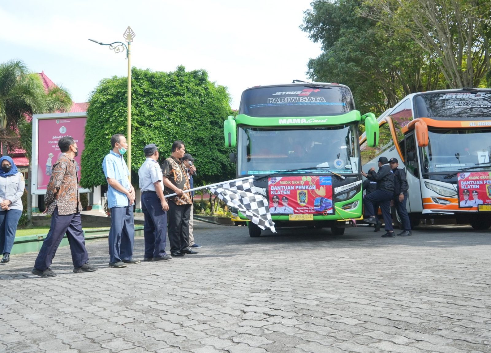 “Untuk driver dan kru, tidak usah terburu-buru, utamakan keselamatan. Pastikan perjalanan aman, serta semoga selamat sampai tujuan dan selamat sampai di Klaten kembali bersama pemudik,” kata Wabup.
