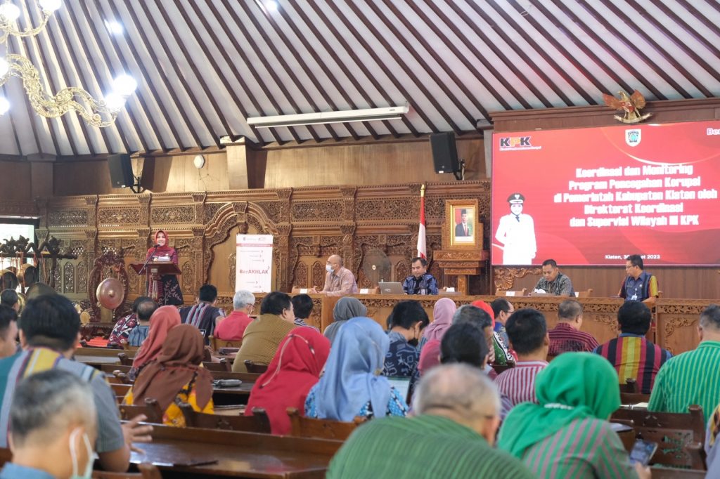 RILISJATENG.COM– Komisi Pemberantasan Korupsi Republik Indonesia (KPK) melalui Direktorat Koordinasi dan Supervisi Wilayah III KPK menggelar koordinasi dan monitoring program pencegahan korupsi di Pemerintah Kabupaten Klaten.