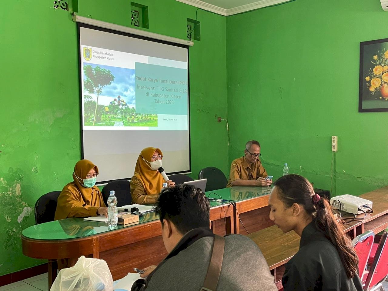 RILISJATENG.COM- Senin, 29 Mei 2023, Seksi Kesling Kesjaor Dinas Kesehatan Kabupaten Klaten mengadakan pertemuan dalam rangka meningkatkan Kegiatan Padat Karya Tunai Desa (PKTD) Tahun 2023 terkait Sanitasi, Jamban dan CTPS yang bertempat dia Aula Kesmas Dinkes Kabupaten Klaten. Acara Buka Ibu Kepala Bidang Kesehatan Masyarakat Dinas Kesehatan Bekti Sayekti S.SiT, M.Kes dengan dihadiri Sanitarian Puskesmas, Kepala Desa dan KKM Desa, Pengurus LPA dan KKM LPA Sesuai Lokus PKDT. Pertemuan ini menitik beratkan Sosilaisasi pembentukan Kelompok Kerja Masyarakat ( KKM ) dan penyampaian petujuk teknis PKTD guna Peningkatan kualitas Kesehatan Lingkungan TTG air Minum dan Sanitasi serta Lembaga Pendidikan Keagamaan Tahun 2023.(RLS)